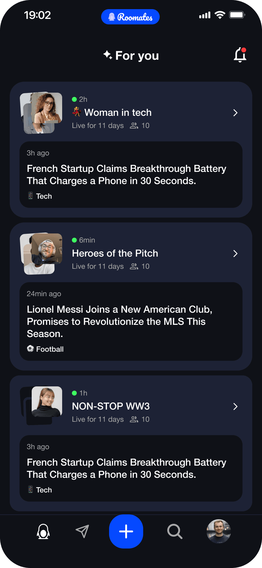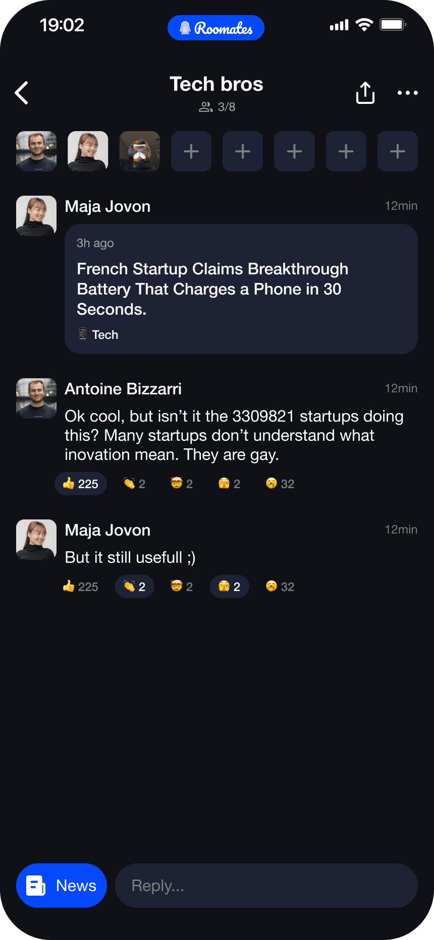 Every news story opens a room. Jump into one that's already buzzing or kick off your own with up to 8 people.